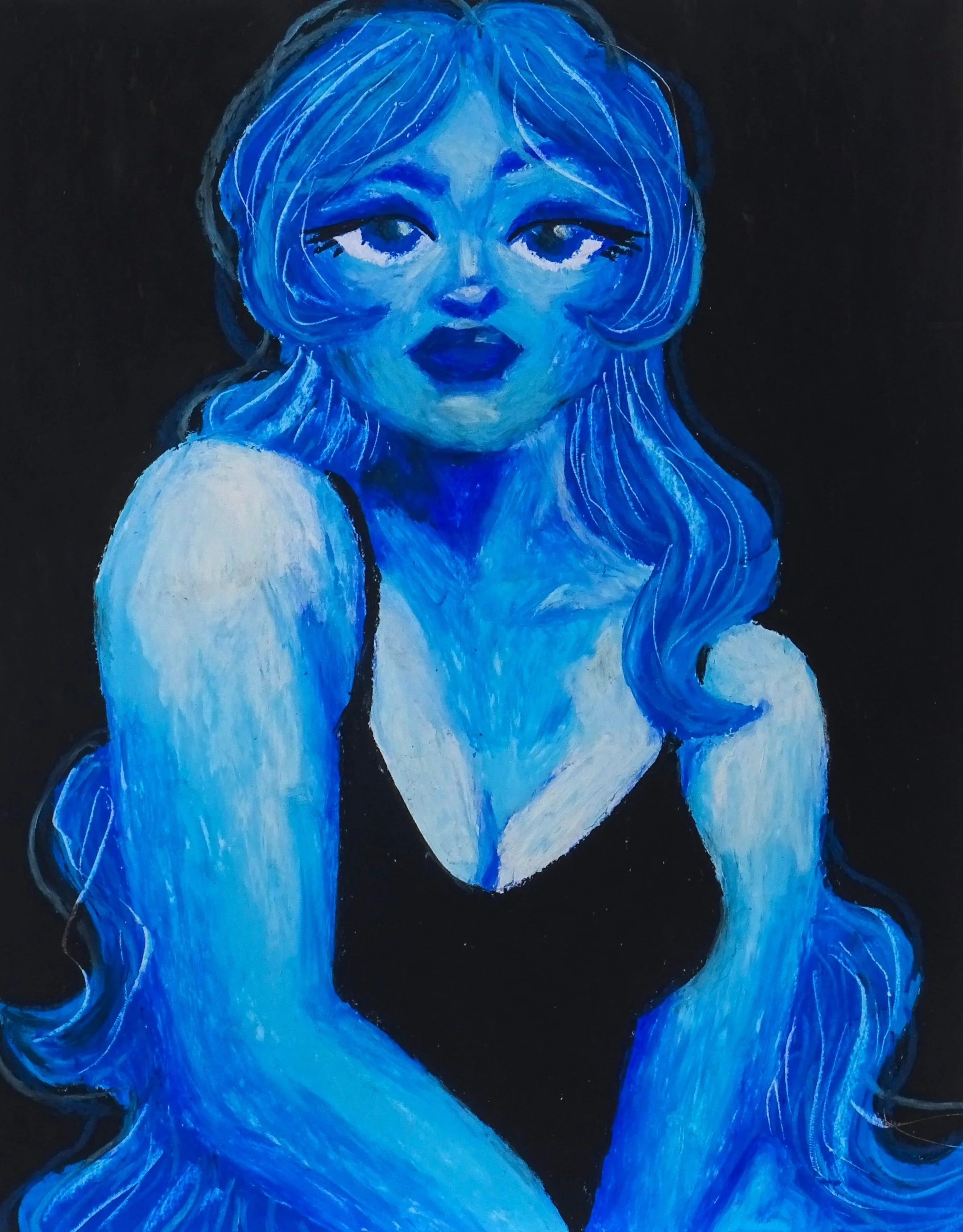 My color choices were inspired by the concentrated and monochromatic color palettes in the webcomic Lore Olympus, as well as blue monochromatic paintings in general. They led me to adore the vibrant nuances of the color blue.