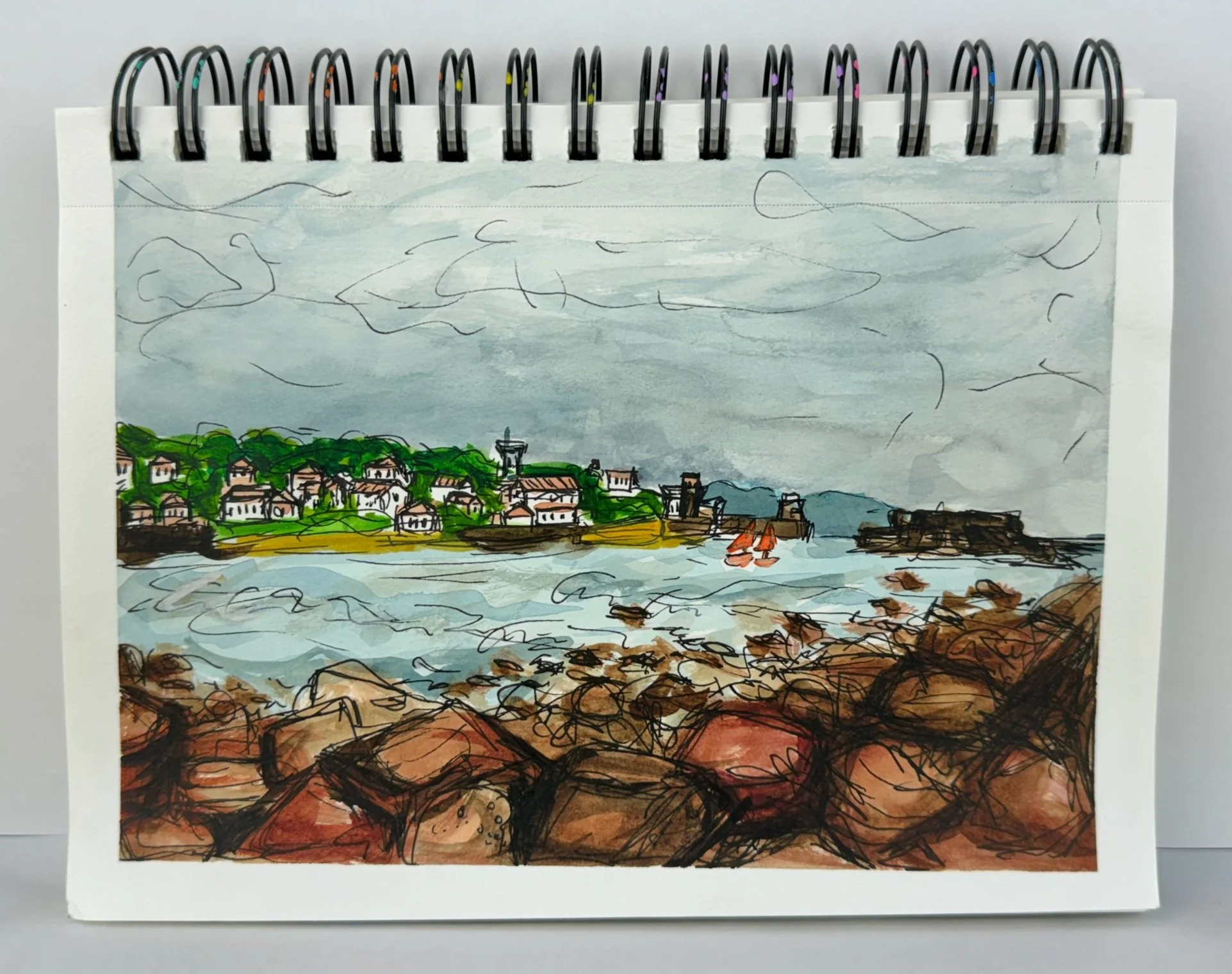 The tides had huge variations: one moment the waves were huge and crashing and a few hours later they receded to reveal a sea of rocks. I climbed down the sea wall steps and sat on the rocks while painting, so I felt like part of the environment I was capturing.