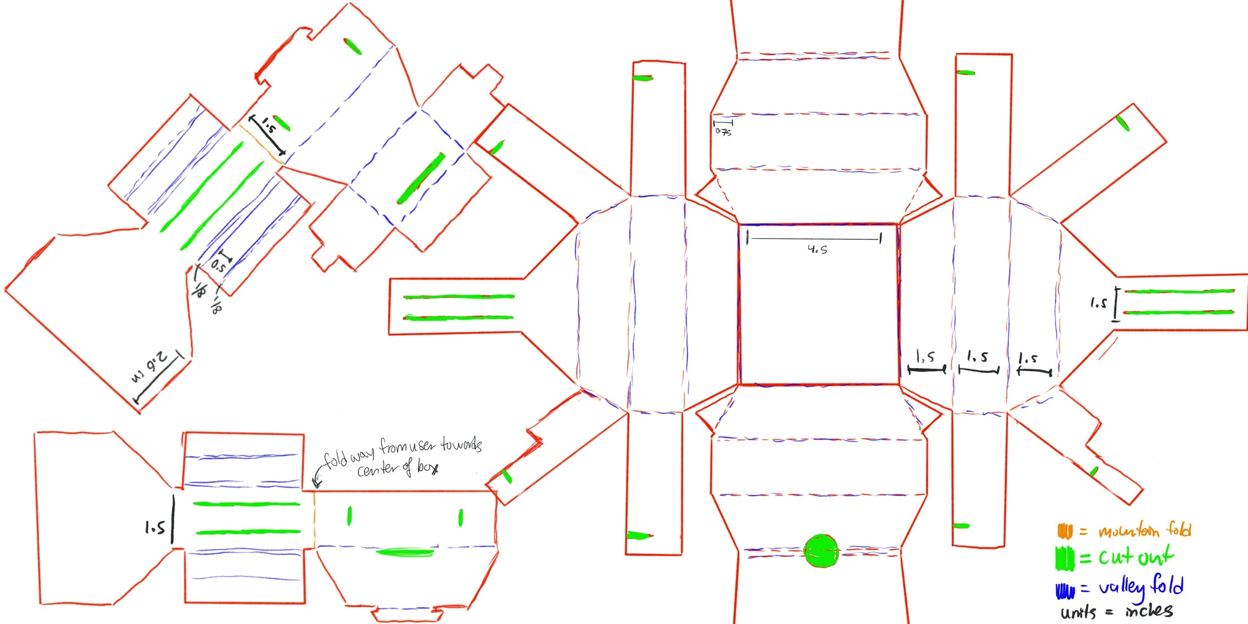After many iterations, my final design uses two separate pieces of cardboard that fold slot together.