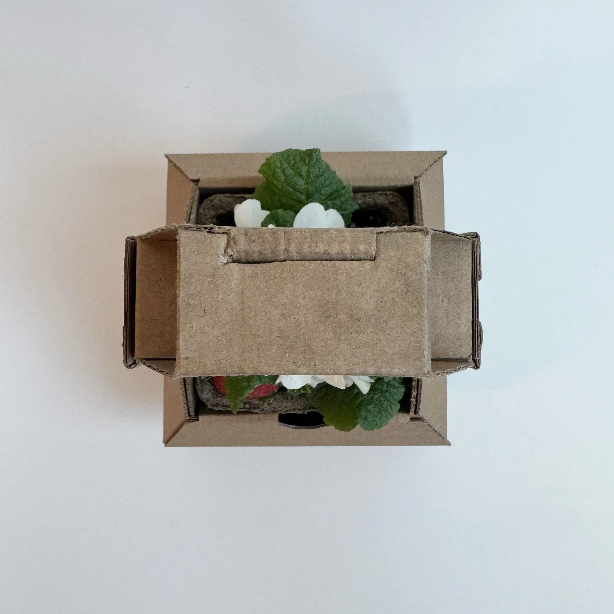 The box is simple, concise, and easy to hold. I am proud that the plant is smoothly removed from the pot, and I love how the edges of the box connect (that portion took a lot of time to perfect!!). I am also very happy with the design of the handles, I find that the folded element adds visual interest and looks clean.