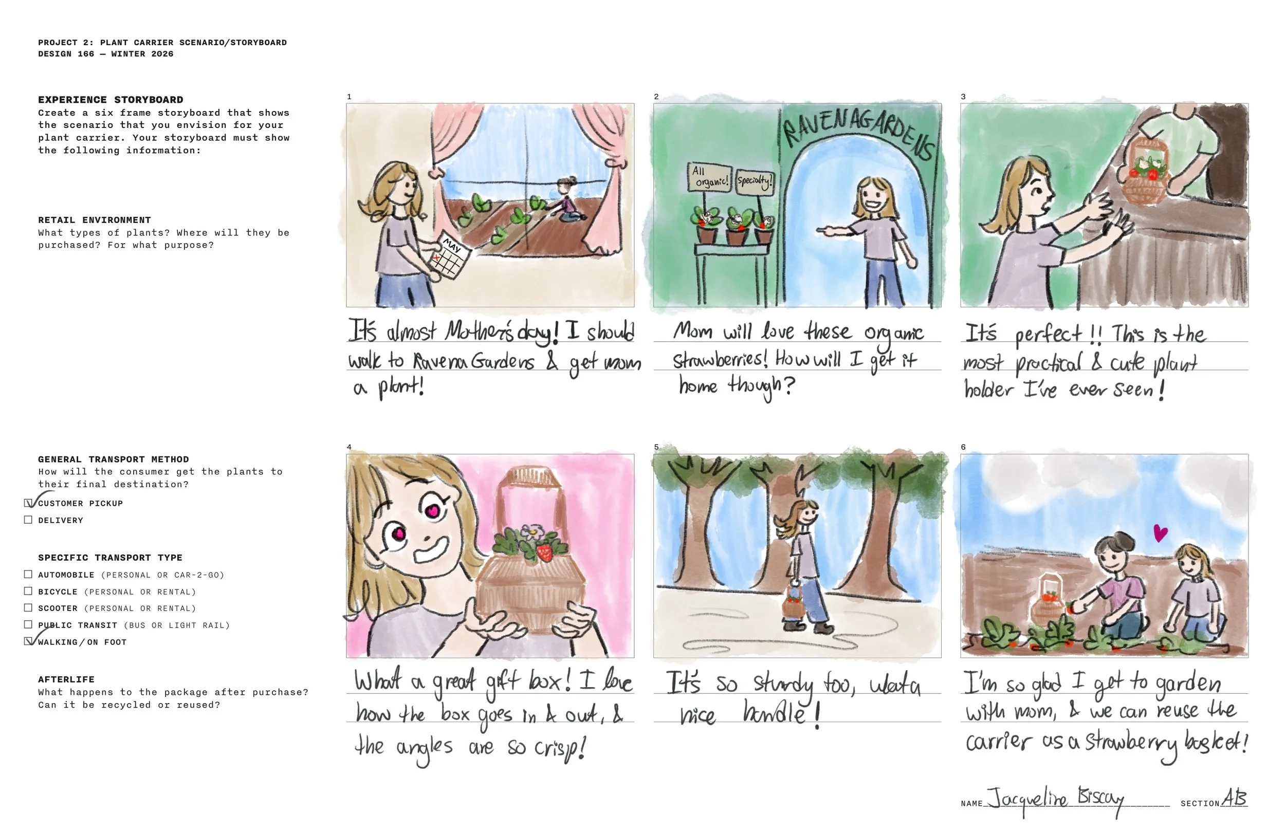 I designed and constructed this strawberry plant carrier for my Design Foundations class at the University of Washington. I had to follow this design brief: